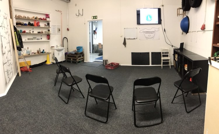 Träningsytans storlek är 30 m2. Golvet är heltäckningsmatta.